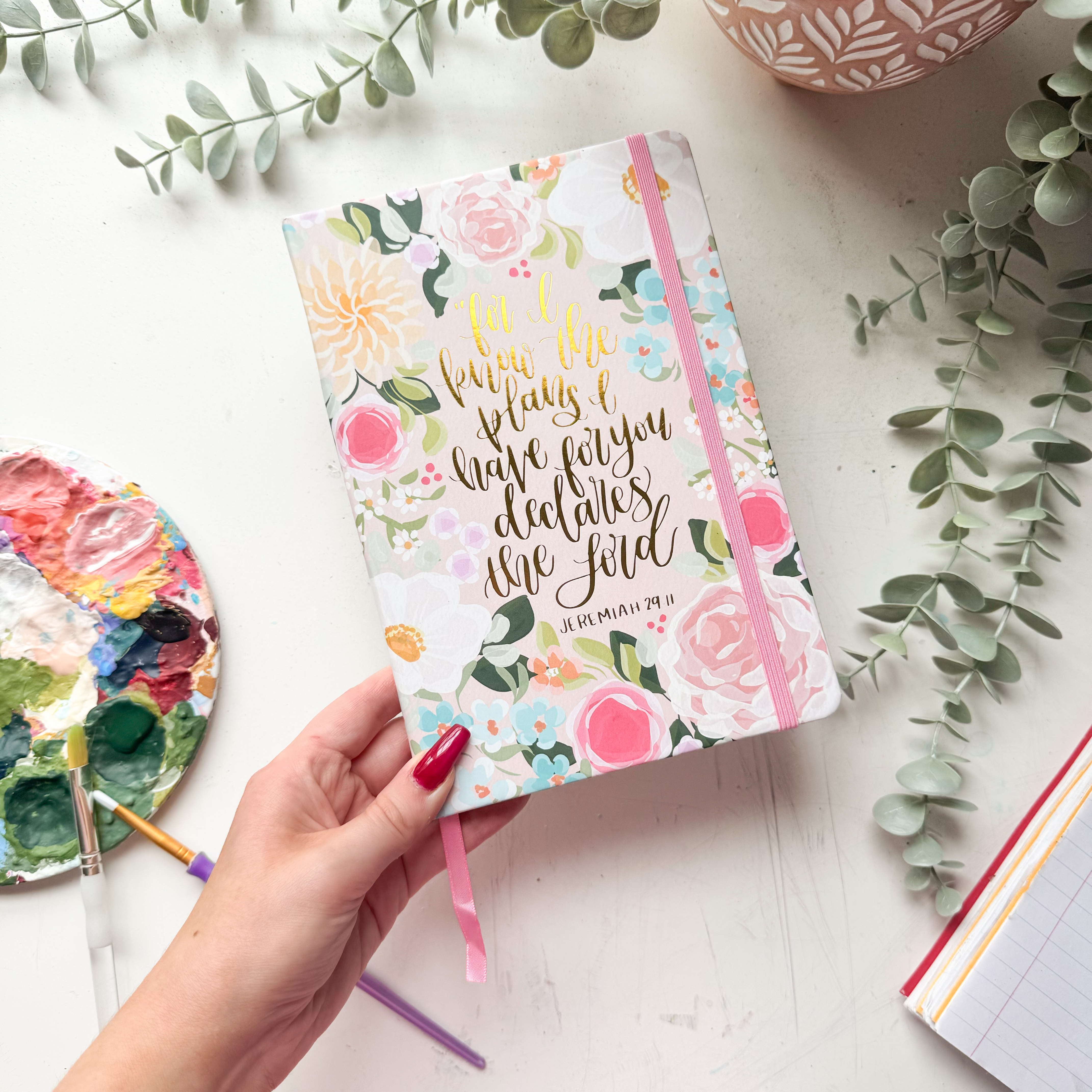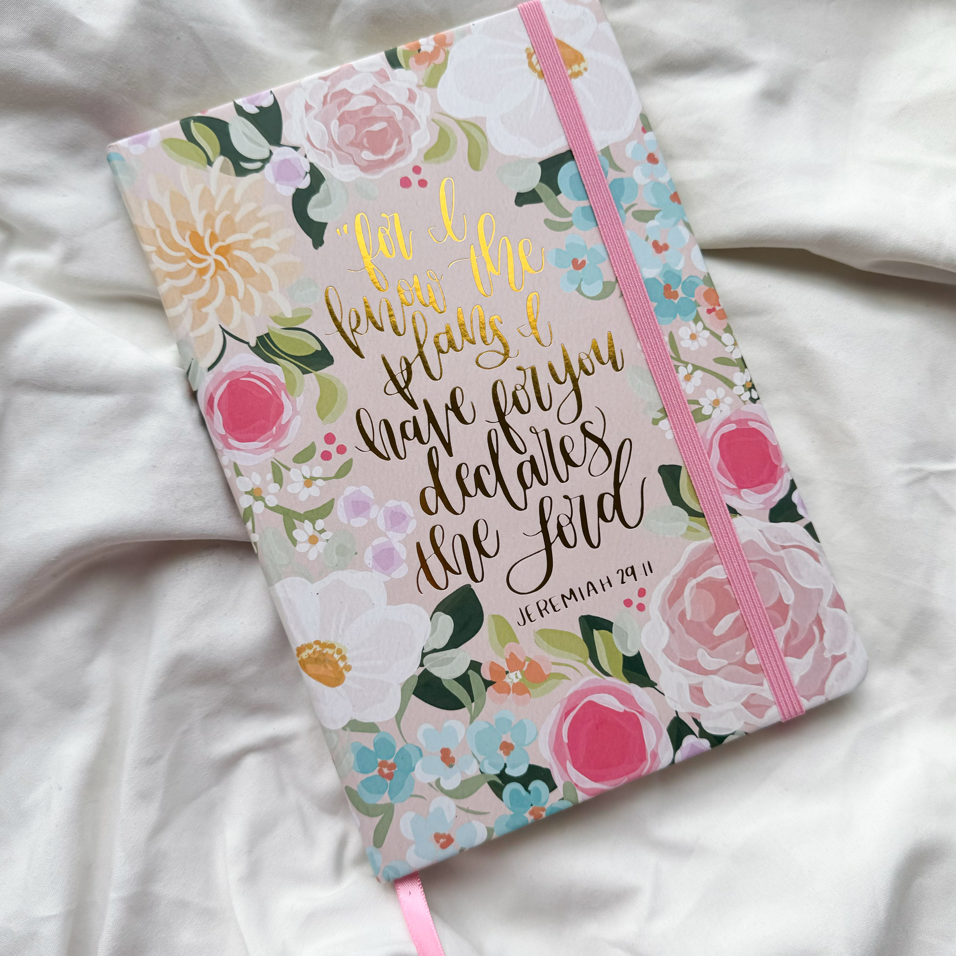 Inspirational Floral Journal with Bible Verse, 200 Pages, A5 Size, Gold Foil-Jeremiah 29:11