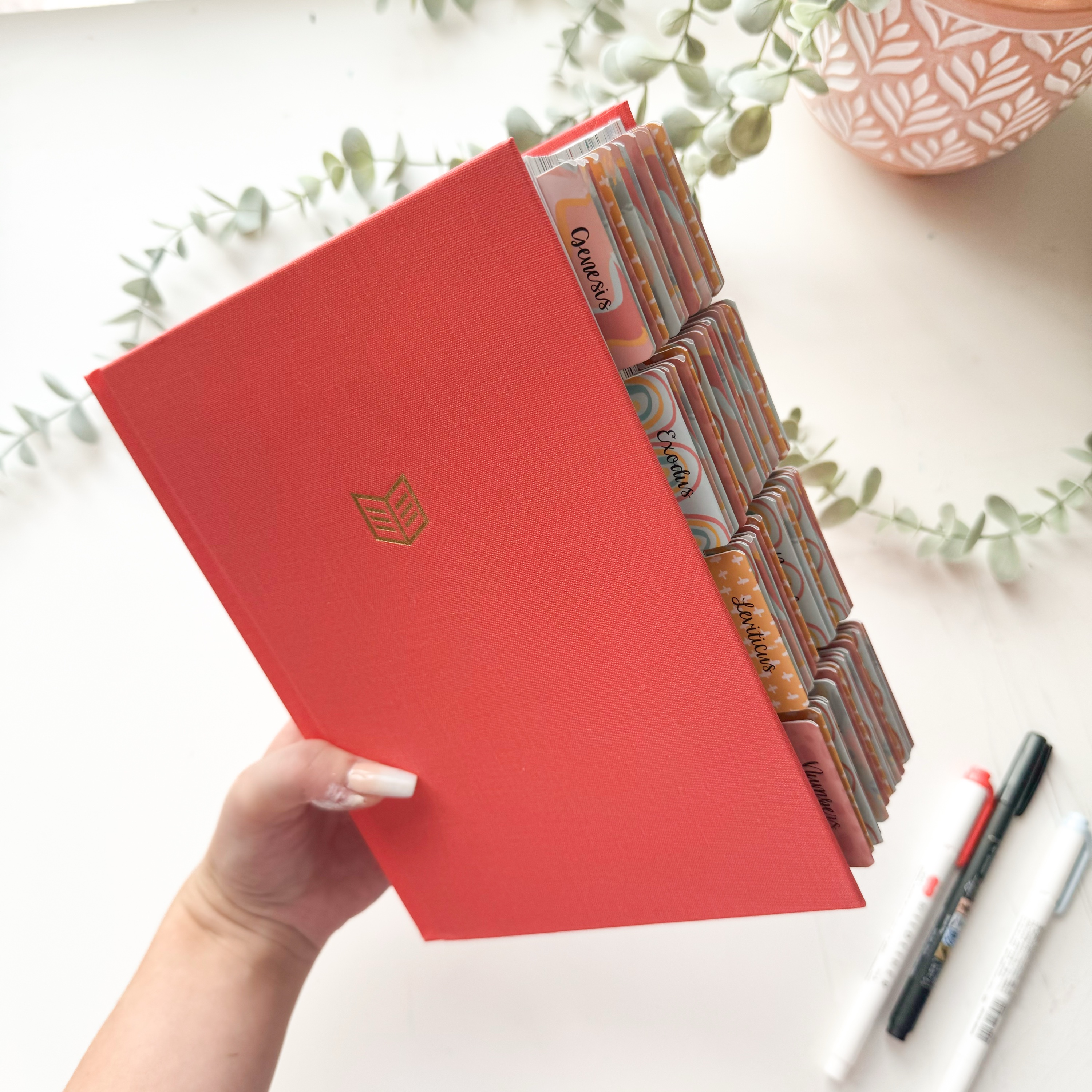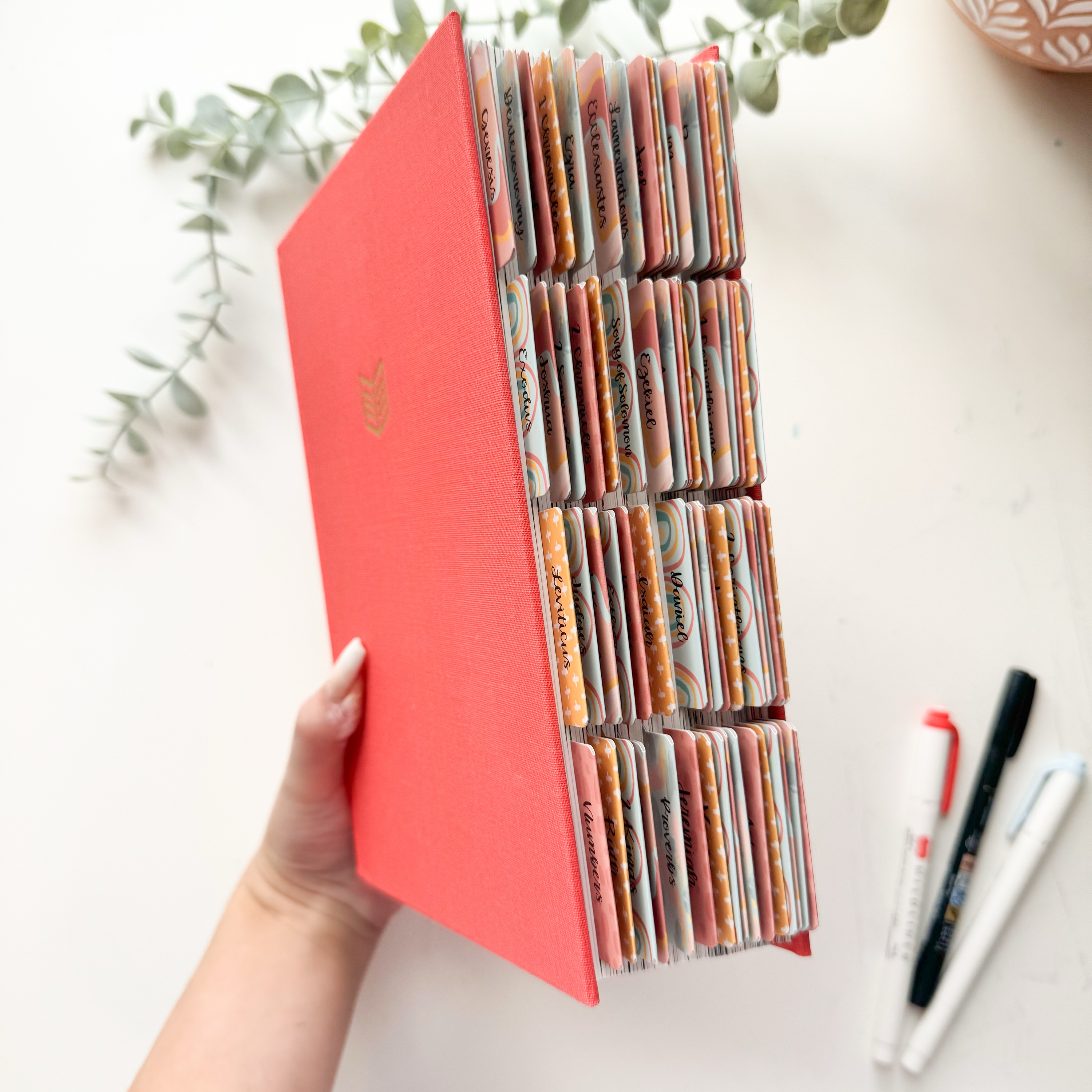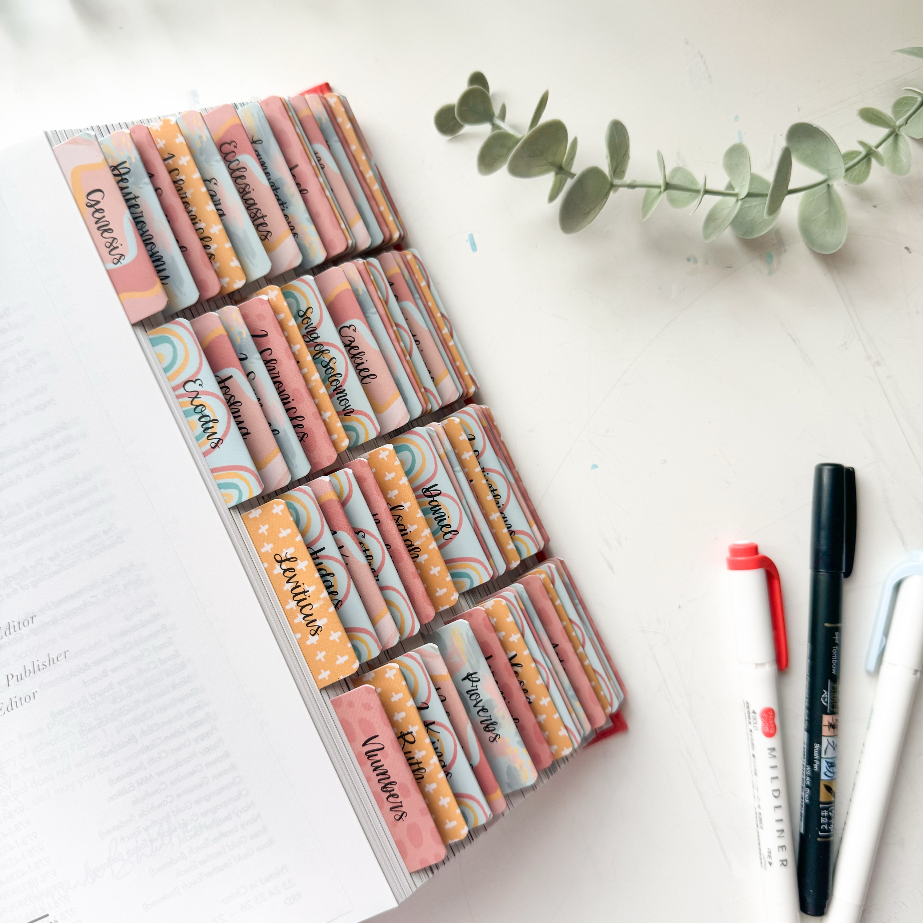 Tabs are handmade by Rosycheeks Lettering to match this Bible.